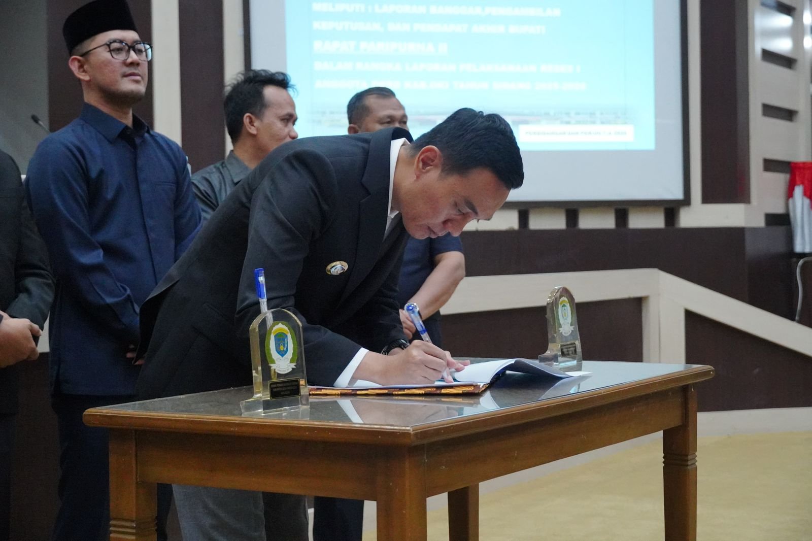 Rancangan Peraturan Daerah (Raperda) tentang APBD Kabupaten Ogan Komering Ilir Tahun Anggaran 2026 resmi disetujui dalam sidang paripurna DPRD OKI, Rabu, (26/11). Persetujuan ini ditandai dengan penandatanganan bersama antara Bupati Ogan Komering Ilir, H. Muchendi dan pimpinan DPRD OKI